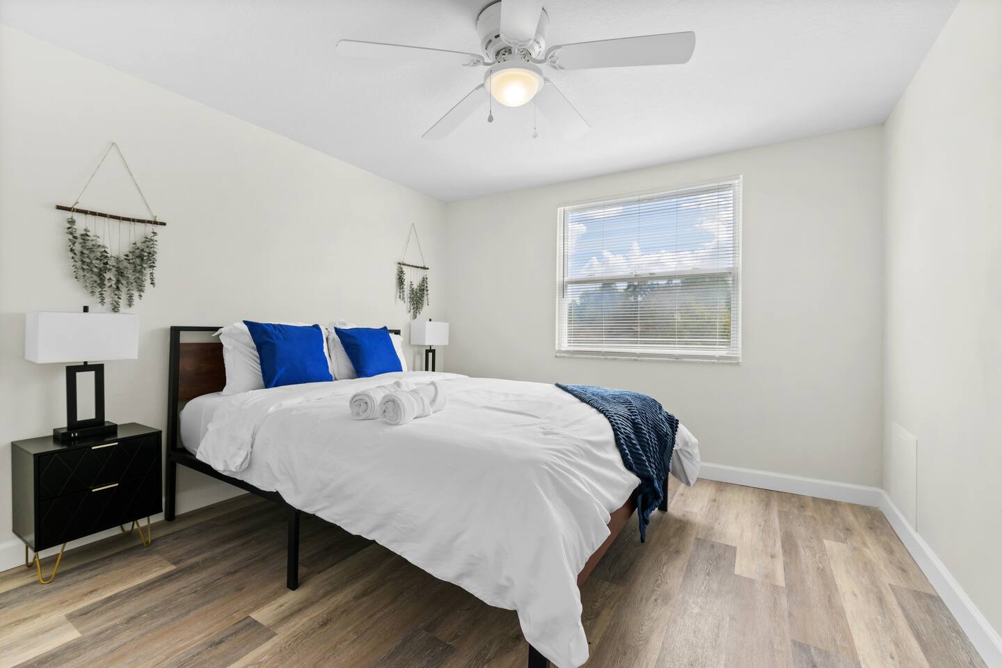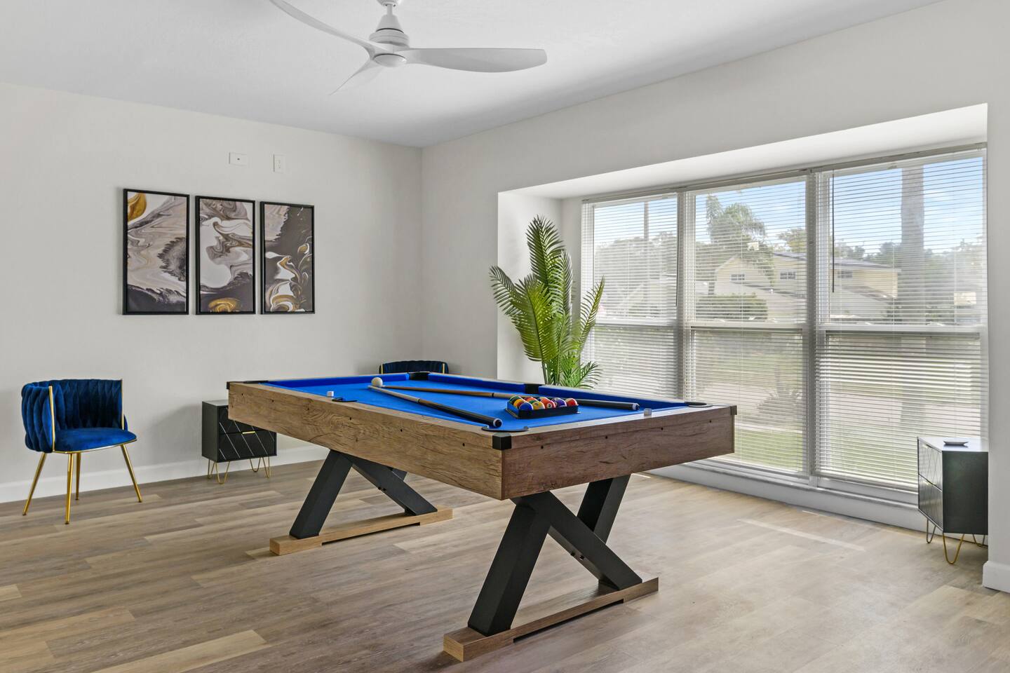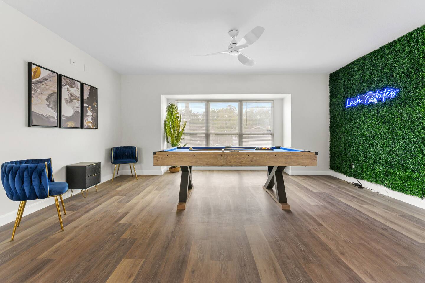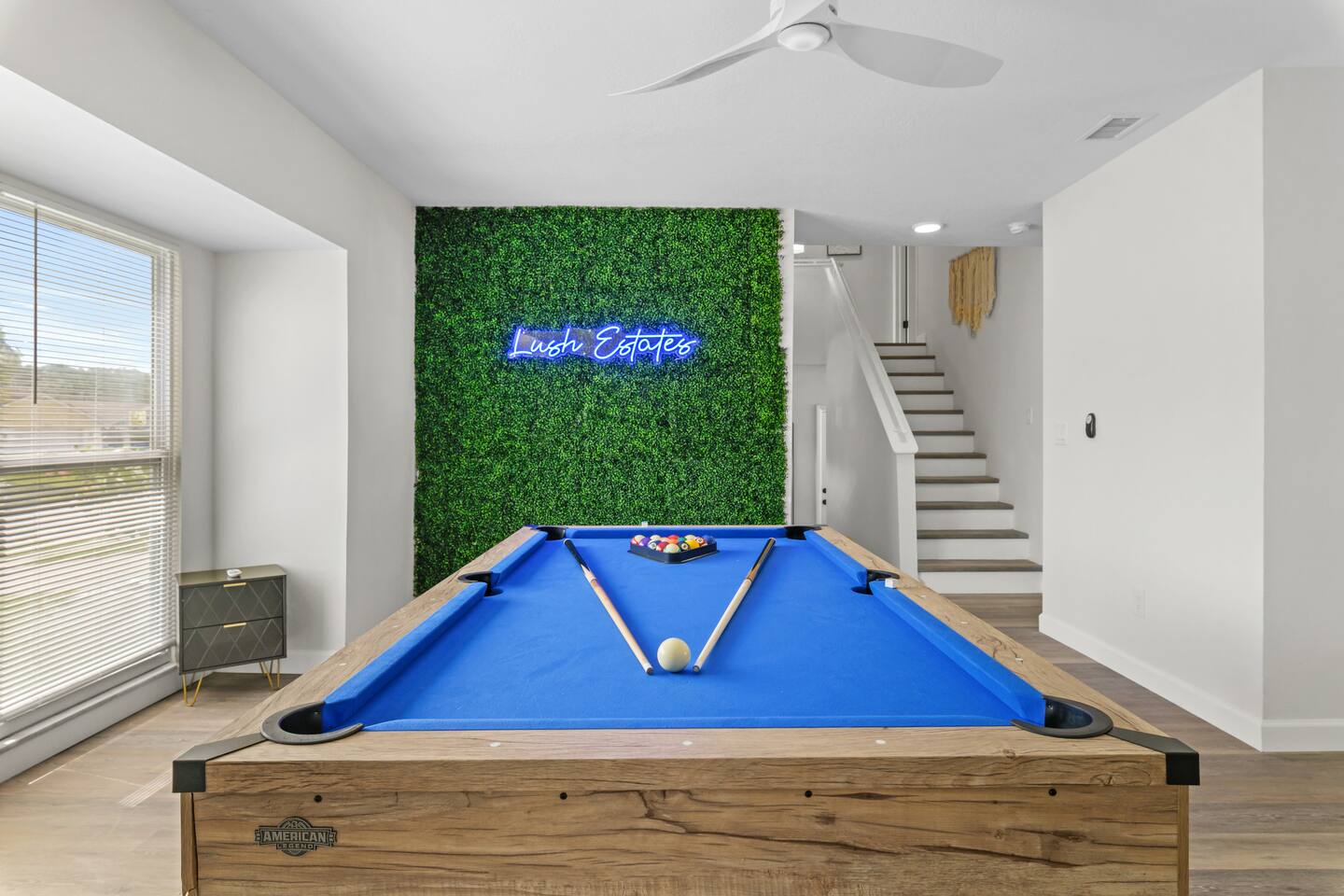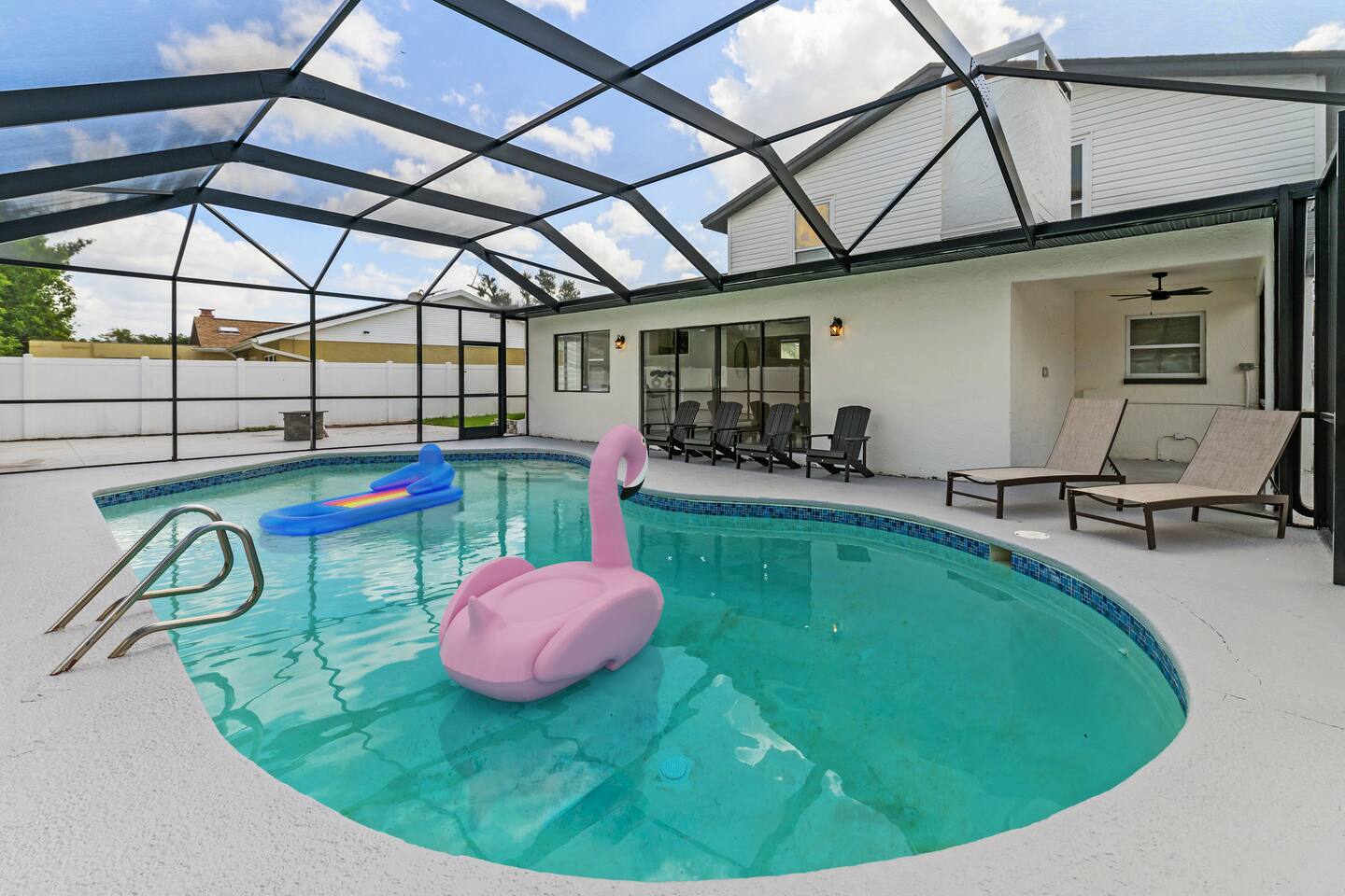 Welcome to this stylish two-story, 2,582 sq ft retreat featuring 4 bedrooms and 3 bathrooms, designed for comfort and entertaining. The open-concept main level offers elegant finishes, a beautifully remodeled kitchen fully stocked with essentials, a sleek wet bar, and a pool table with a thoughtfully styled dining area. All bedrooms are located on the second floor, providing a quiet and private space to unwind. Step outside to enjoy your private pool, along with a BBQ grill and fire pit—perfect for relaxing days and cozy evenings. A perfect blend of space, style, and function—ideal for families, friends, or extended stays. All bedrooms are located on the second floor, providing a quiet and private space to unwind. Step outside to relax with a BBQ grill and fire pit, perfect for evenings under the stars. The Space: Upstairs--> Master Bedroom: Queen Size Bed with en-suite bathroom Bedroom 2: Queen Size Bed Bedroom 3: Queen Size bed Bedroom 4: Queen Size Bed Full Hallway Bathroom Downstairs--> Half Bath Kitchen Laundry Room Game Room **Florida Climate & Insect Awareness: Florida is a tropical environment, which means encounters with insects-such as ants, palmetto bugs, or mosquitoes. This can happen even in clean, well-maintained homes. We take cleanliness seriously and use regular professional pest control on a monthly basis, but we can't guarantee a completely bug-free experience. By booking, guests acknowledge this natural part of Florida living. No refunds will be issued for insect sightings.