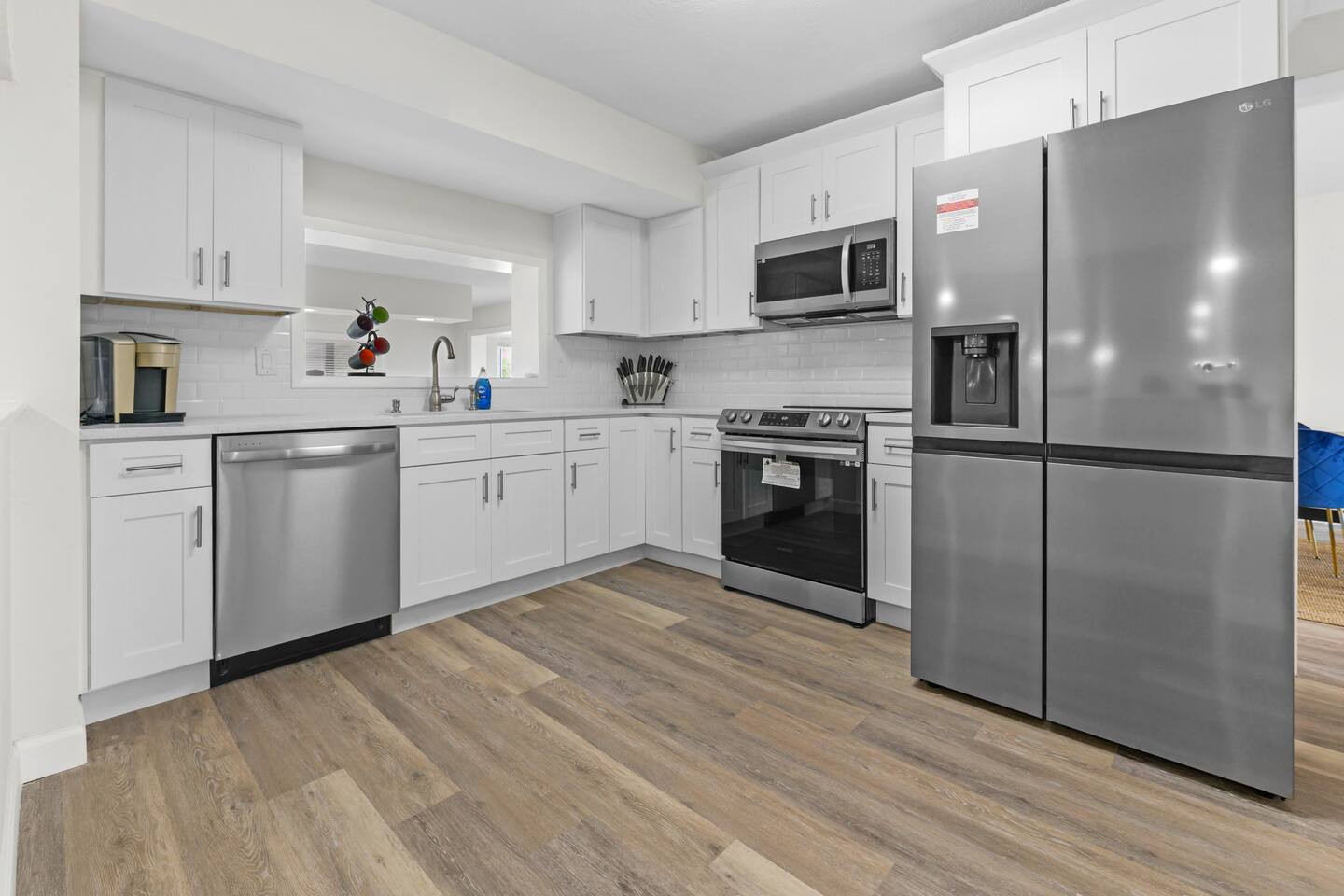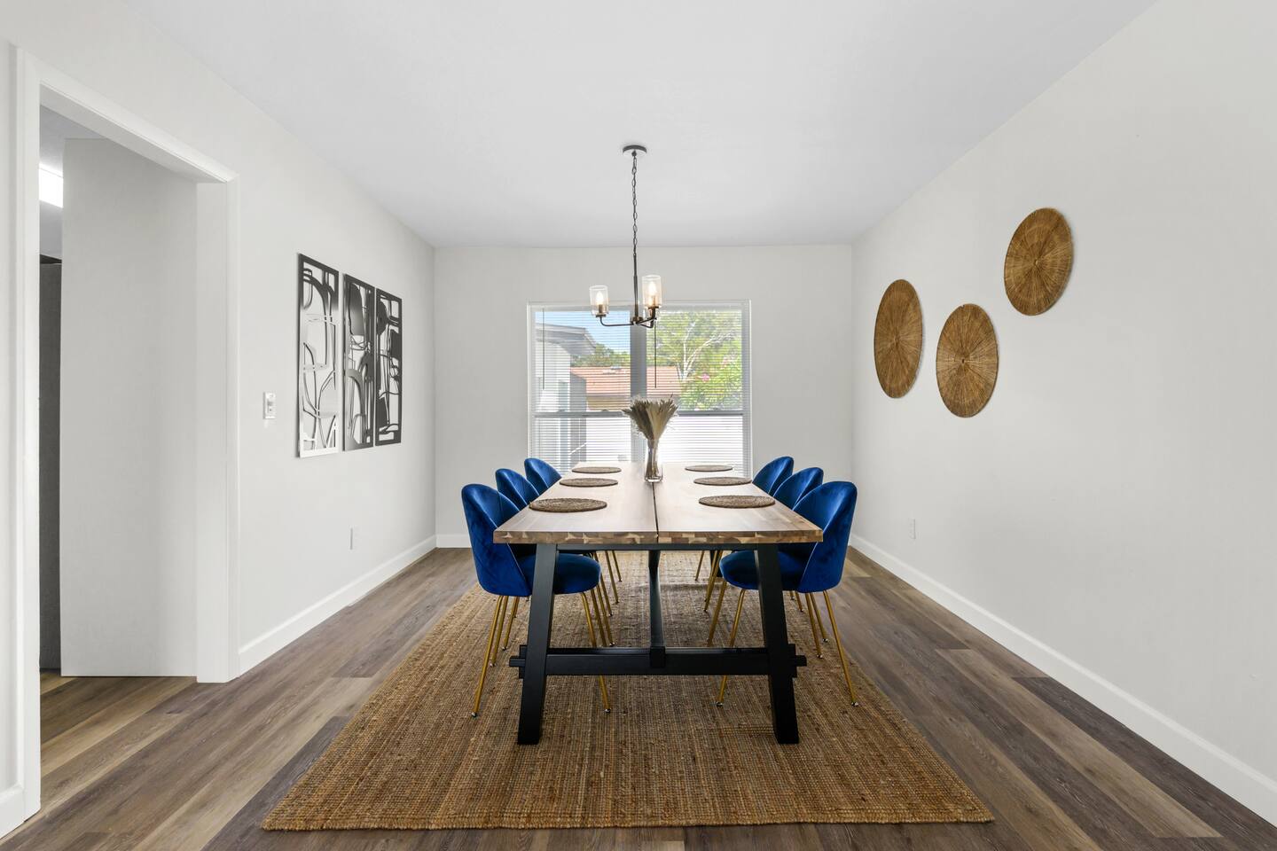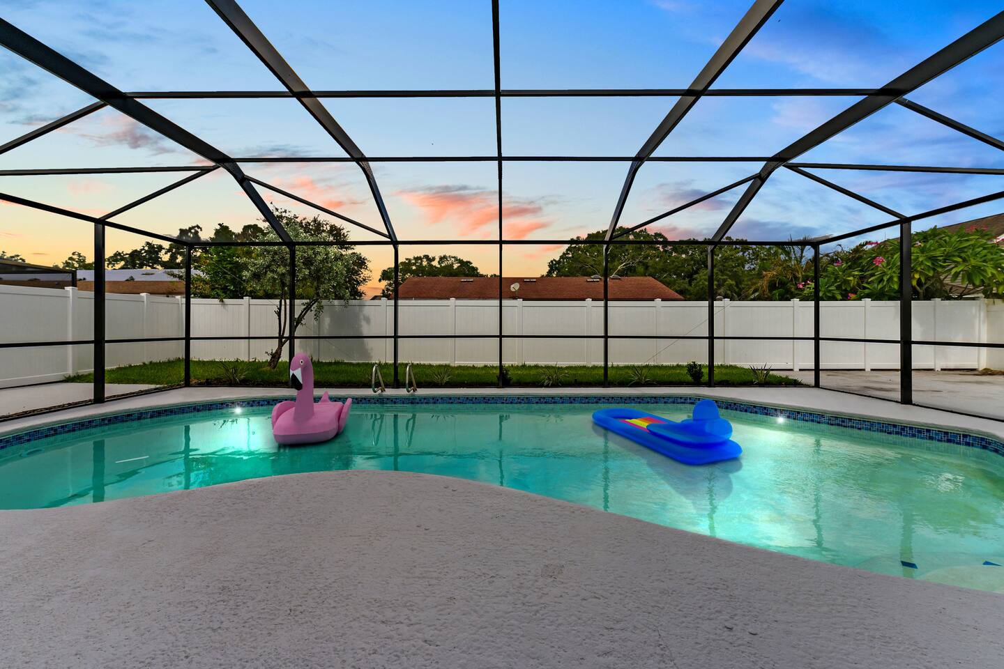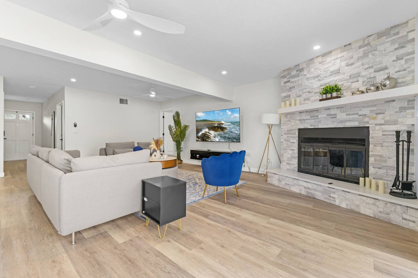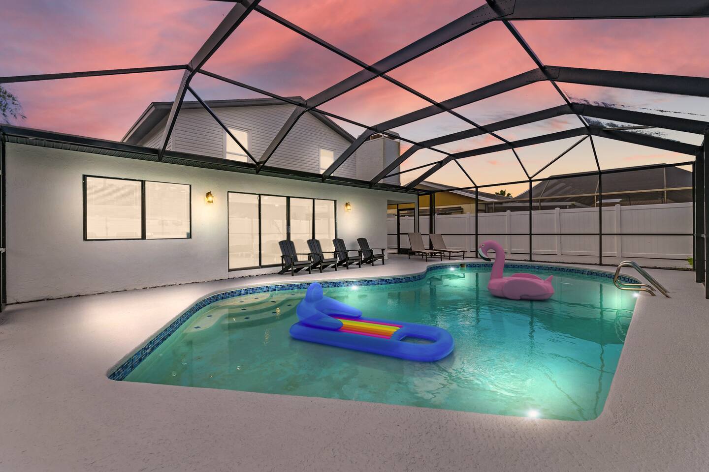 Welcome to this stylish two-story, 2,582 sq ft retreat featuring 4 bedrooms and 3 bathrooms, designed for comfort and entertaining. The open-concept main level offers elegant finishes, a beautifully remodeled kitchen fully stocked with essentials, a sleek wet bar, and a pool table with a thoughtfully styled dining area. All bedrooms are located on the second floor, providing a quiet and private space to unwind. Step outside to enjoy your private pool, along with a BBQ grill and fire pit—perfect for relaxing days and cozy evenings. A perfect blend of space, style, and function—ideal for families, friends, or extended stays. All bedrooms are located on the second floor, providing a quiet and private space to unwind. Step outside to relax with a BBQ grill and fire pit, perfect for evenings under the stars. The Space: Upstairs--> Master Bedroom: Queen Size Bed with en-suite bathroom Bedroom 2: Queen Size Bed Bedroom 3: Queen Size bed Bedroom 4: Queen Size Bed Full Hallway Bathroom Downstairs--> Half Bath Kitchen Laundry Room Game Room **Florida Climate & Insect Awareness: Florida is a tropical environment, which means encounters with insects-such as ants, palmetto bugs, or mosquitoes. This can happen even in clean, well-maintained homes. We take cleanliness seriously and use regular professional pest control on a monthly basis, but we can't guarantee a completely bug-free experience. By booking, guests acknowledge this natural part of Florida living. No refunds will be issued for insect sightings.